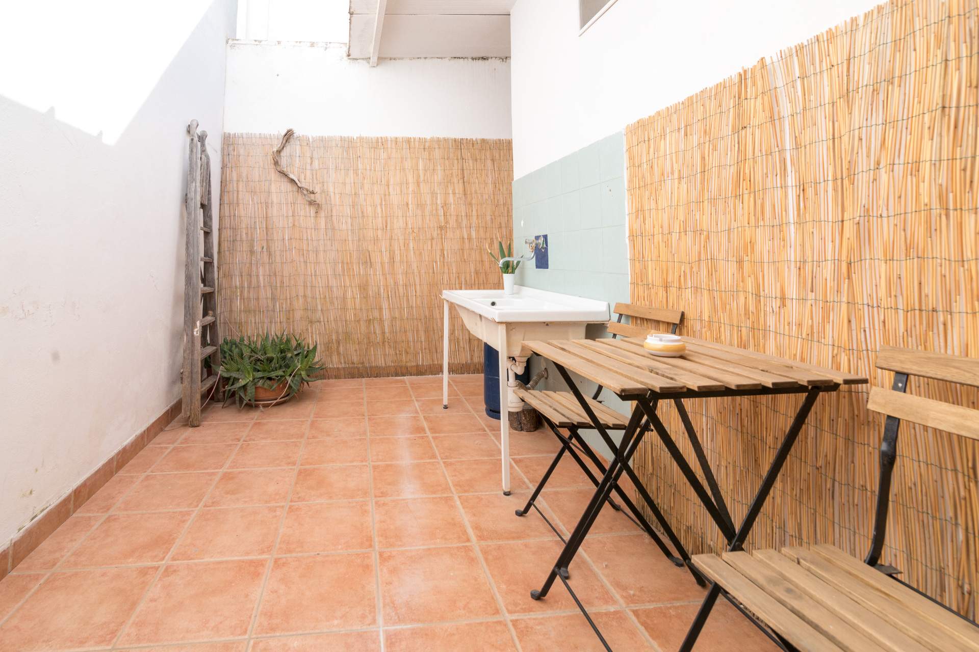 Dispone inoltre di spazio esterno attrezzato con tavolo e sedie per regalare piacevoli spazi d’ombra e poter pranzare /cenare all’aperto in totale libertà.