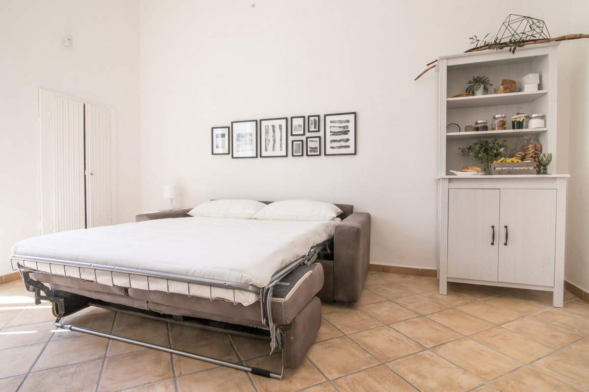 L’appartamento, finemente arredato, è posto al piano terra e si compone di un grande ingresso/soggiorno pranzo con divano letto matrimoniale, un’ampia e luminosa camera da letto matrimoniale, bagno con doccia.